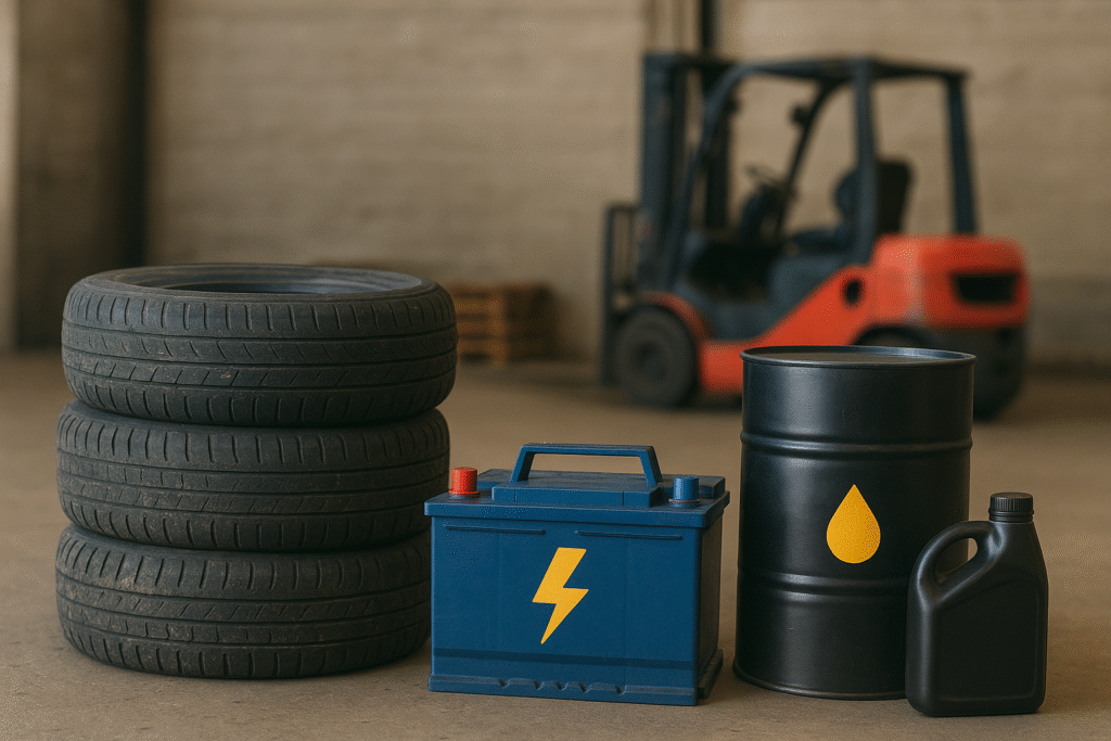 Gestión responsable de residuos en equipos industriales: llantas, baterías y aceite
